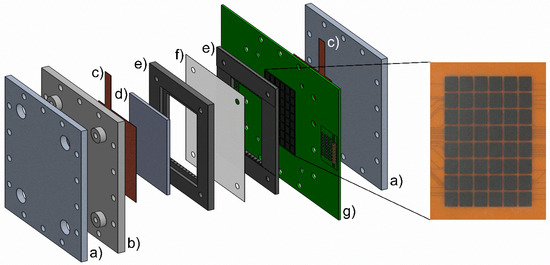 - Wieser, C.; Helmbold, A.; Gülzow, E. A new technique for two-dimensional current distribution measurements in electrochemical cells. J. Appl. Electrochem. 2000, 30, 803–807. [Google Scholar] [CrossRef]