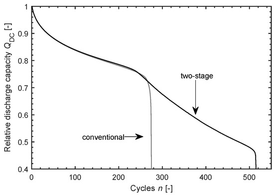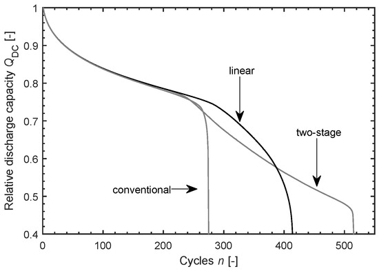 Figure 3 shows the development of discharge capacity in relation to the first cycle’s discharge capacity
