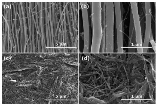 Vertically-aligned carbon nanotubes were obtained in a chemical vapor deposition process from toluene (HPLC grade, Fisher Scientific, Hempton, NH, USA) as a carbon precursor and ferrocene (99.5%, Alfa Aesar, Haverhill, MA, USA) as a catalyst [