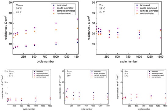 | Cycle Number | Laminated | Anode-Laminated | Cathode-Laminated | Non-Laminated |