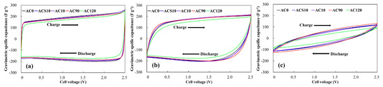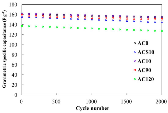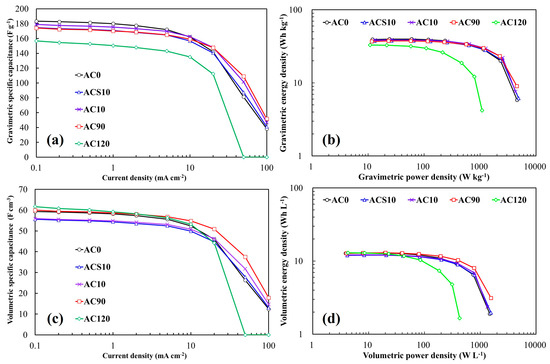 | Current Density (mA cm−2) | AC0 | ACS10 | AC10 | AC90 | AC120 |