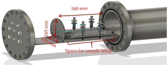 TR experiments are carried out inside a gastight 40 bar pressure resistant stainless-steel reactor. The test-rig is published in [,,] and is shown in Figure 3. The stainless-steel reactor with the implemented sample holder has a free volume of 121.5 L. The experiments can be done in N2 atmosphere or in air. For safety reasons most experiments are done in N2 atmosphere, as are the presented ones.
