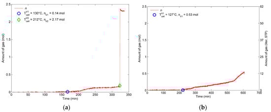 - The venting rate: Golubkov et al. published a characteristic venting rate of (0.8 ± 0.3) mol/s at heat ramp TR experiments of 50 Ah prismatic LMO cells []. A relevant analysis of the venting rate of NMC and NMC/LMO pouch cells is not available in accessible literature.