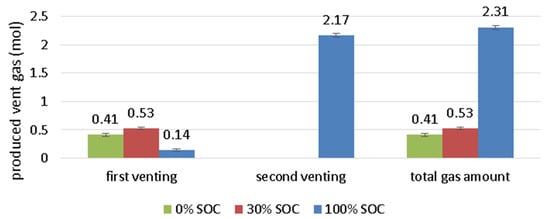 - The first venting is measured at 120–130 °C cell surface temperature independent of the SOC.
