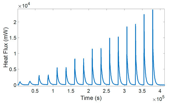 The measurement of the heat flux of the battery cell during the course of charging and discharging at different current rates was accomplished at isothermal condition by using an isothermal battery calorimeter. Figure 5 demonstrates the generated heat in a 13 Ah lithium-ion pouch cell, which was measured by using an isothermal battery calorimeter. The charging and discharging current rates were selected from 1 to 8C.
