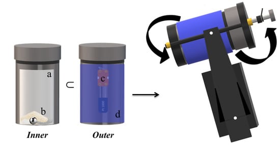 To synthesize the desired ternary phase by BM, several tests were carried out varying the magnesium source (MgH2 or Mg) and the milling time. The starting materials were: MgH2 (Sigma-Aldrich 90.0%), Mg (Ventron 99.9%), Cr (Aldrich 99.5%), and S (Alpha Aesar 99.5%). The materials were handled under a protective argon atmosphere by using a Glove box (MBraun 20G), and for each experiment, the powders were sealed in a stainless-steel reactor with a single stainless steel ball. The mixtures were subjected to the mechanical process for increasing milling times, using a SPEX Mixer/Mill 8000 modified to operate at different rotation speeds (500–1200 rpm). The milling vial was equipped with a platinum sensor mounted on the outer surface, to monitor the temperature as a function of the reaction time, to assess the possible presence of mechanically induced self-propagating reactions (MSR) and to identify their ignition time. A representation of the experimental setup is shown in Figure 8.