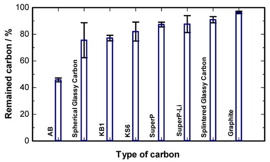 Remaining carbon percentage of cathodes using different types of carbon after the carbon stability test.