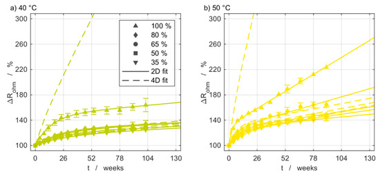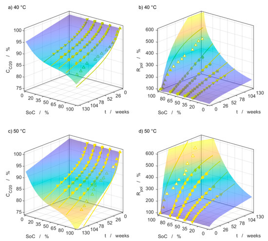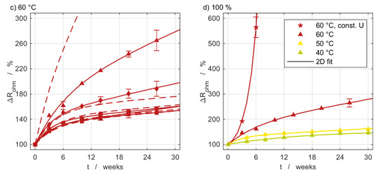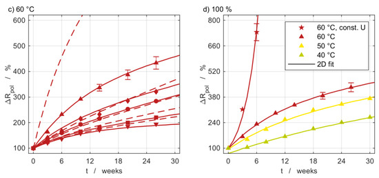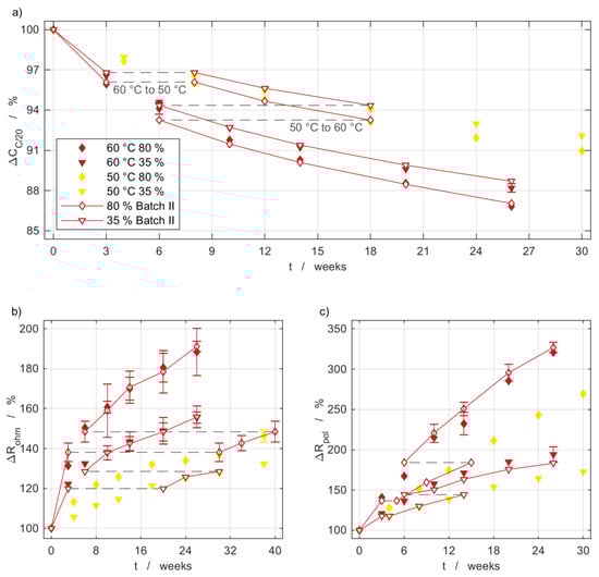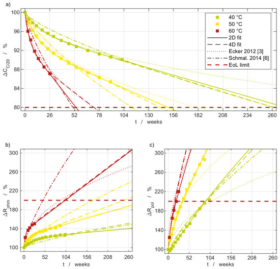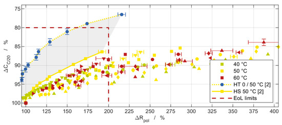 | Parameter 60 °C/50 °C/40 °C | CC/20 tEoL/Weeks | Rohm tEoL/Weeks | Rpol tEoL/Weeks |