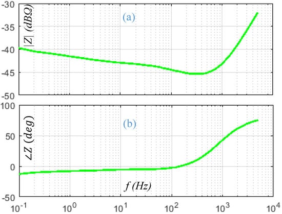 Bode-plot of internal impedance: (a) magnitude, (b) phase [].
