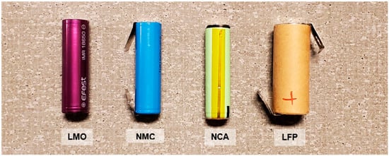 Four lithium-ion battery cells with different chemistries tested in the study.