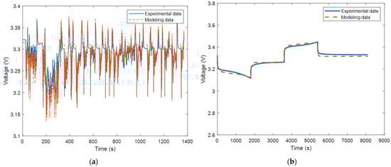 Model validation results from the LFP cell using first-order ECM at 0.6 SOC: (a) UDDS cycle, and (b) ND cycle.