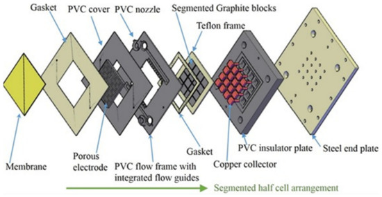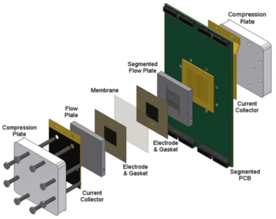 Exploded view of half-cell components at the segmented side (reproduced from ref [101], with permission from Elsevier).