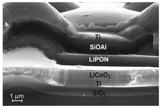 Cross-section of solid-state thin-film lithium-ion battery.