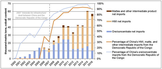 - Gulley, A.L.; McCullough, E.A.; Shedd, K.B. China’s domestic and foreign influence in the global cobalt supply chain. Resour. Policy 2019, 62, 317–323. [Google Scholar] [CrossRef]