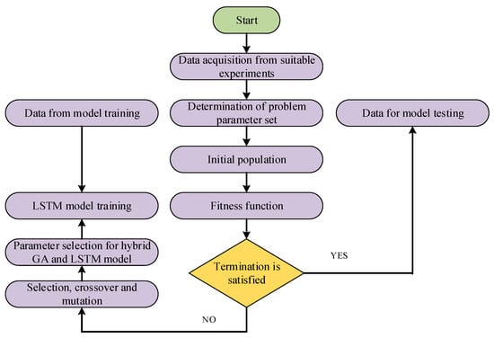 Weigert et al. [72] previously developed a three-layer ANN model for estimating the cycle life of the battery-supercapacitor system. The RUL estimation of the supercapacitor was conducted based on short charge-discharge curve data. A three-layer backpropagation neural network (BPNN) was employed, where the model hyperparameters were selected using the trial and error method. The input to the BPNN model was ESR, duty ratio and battery type. However, the estimated outcomes were unsatisfactory. Hence, new input in the form of voltage from the discharge curve was considered, which resulted in satisfactory outcomes with an estimation error under 4%. Even though the estimation accuracy increased with a suitable selection of input data the optimal values of model hyperparameters were nonetheless crucial factors. Additionally, the memory space was not provided for previous weights, resulting in ineffectiveness in finding a global optimal. In recent times, the application of RNN has effectively solved the limitations of the above-mentioned work. Several research studies for RUL estimation based on RNN models such as the long short term memory (LSTM) model, have been accomplished. Zhou et al. [73] developed an LSTM-based method for an RUL estimation of supercapacitors. The RUL estimation was carried out considering a number of charging and discharging cycles as an input to the LSTM model. The model hyperparameters such as learning rate, hidden layer and dropout ratio were selected, based on the trial and error method. The outcomes of the LSTM model in RUL prediction were compared to other RNN models, such as simple RNN and gated recurrent unit (GRU). The proposed model achieved satisfactory outcomes, but the application of suitable functions such as the call-back function could be implemented to optimize the model with the best hyperparameters. Furthermore, Zhou et al. [74] extended earlier work and proposed a hybrid GA and LSTM-based technique for a RUL estimation of a supercapacitor, as shown in Figure 9.