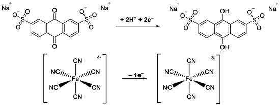 Scheme of an RFB using AQDS and Na4[Fe(CN)6] as redox–active materials.
