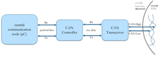 In this case, the BMS takes care of the operating strategy, state observing and communication of data to the rest of the vehicle, which is often conducted by a controller area network (CAN) bus. It is therefore possible to sniff data from such a communication line, e.g., between the BMS and the inverter ECU, while they exchange information. Needless to say, this requires some manipulations to enable a physical coupling into the communication lines (two in the case of CAN–bus).