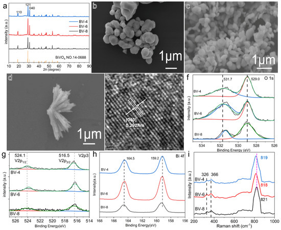 - Xu, X.; Xu, Y.; Xu, F.; Jiang, G.; Jian, J.; Yu, H.; Zhang, E.; Shchukin, D.; Kaskel, S.; Wang, H. Black BiVO4: Size tailored synthesis, rich oxygen vacancies, and sodium storage performance. J. Mater. Chem. A 2020, 8, 1636–1645. [Google Scholar] [CrossRef]