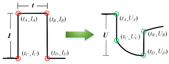 For convenience, an option is to measure the internal resistance to reflect the battery capacity. The battery internal resistance can be directly measured by applying a current pulse to the battery [] as shown in Figure 7. Usually, the current pulse lasts a few seconds, and then the internal resistance can be calculated by the following Equation,