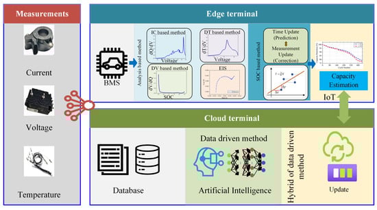However, we also realized that there is a limited number of reviews on capacity estimation, especially for online implementable capacity estimation in BMS. Ref. [] covers almost all the battery states including SOH, SOC, State-Of-Power (SOP), State-Of-Energy (SOE), etc., and selects the current research hotspots for discussion and evaluation. It is oriented towards the BMS and summaries the features of various states, but the capacity estimation methods are not well addressed. Refs. [,] provide a discussion of the classification of existing capacity estimation methods. Although the principles for the classification are different, they both discuss, in detail, the research methods, but [] is more focused on the model-based method for Li-ion battery SOH estimation, and [] published in 2015 has not covered any discussions about machine learning based methods. Most of the existing reviews on battery capacity estimation focus on the generalization of existing methods and do not distinguish between their application conditions or scenarios. The current booming market of EVs also requires the practicality of onboard BMS. It is found that there is a lack of a summary of the existing knowledge for onboard capacity estimation. Therefore, this work overviews and compares the current battery capacity estimation methods suitable for onboard BMS. The characteristics of various capacity estimation are reviewed and discussed in this paper.
