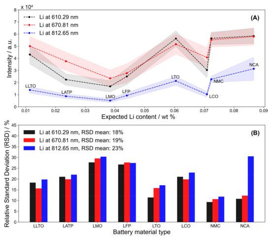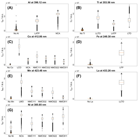 - Imashuku, S.; Taguchi, H.; Kawamata, T.; Fujieda, S.; Kashiwakura, S.; Suzuki, S.; Wagatsuma, K. Quantitative lithium mapping of lithium-ion battery cathode using laser-induced breakdown spectroscopy. J. Power Sources 2018, 399, 186–191. [Google Scholar] [CrossRef]