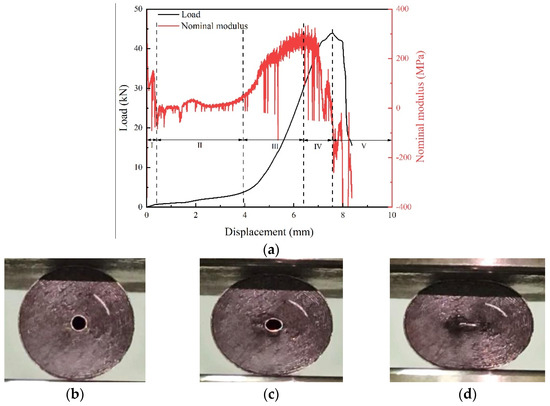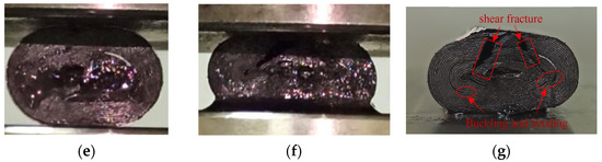 - It was found that the deformation process of the battery under radial compression could be divided into five stages. Stage I and Stage II were for the steel shell and steel core to resist the load, respectively. In Stage III and Stage IV, the jellyroll resisted the load, the electrolyte was squeezed out, and the nominal modulus of the cell reached its maximum at the end of Stage III. In Stage V, the battery was severely damaged and cracks appeared; interlayer fracture and local buckling were found in the failure modes of the battery.