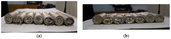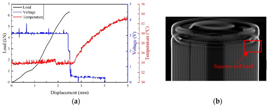 - Zhu, J.; Zhang, X.; Sahraei, E.; Wierzbicki, T. Deformation and Failure Mechanisms of 18650 Battery Cells under Axial Compression. J. Power Sources 2016, 336, 332–340. [Google Scholar] [CrossRef]