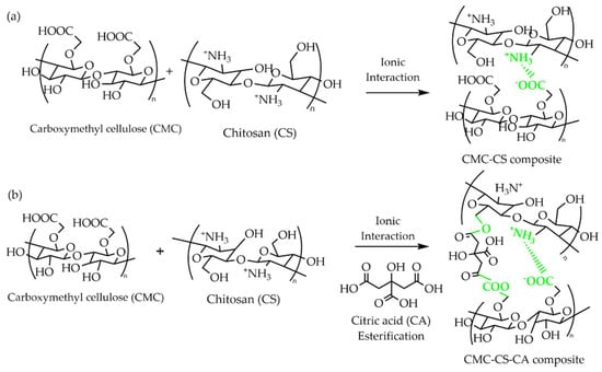 - Uyanga, K.A.; Daoud, W.A. Green and sustainable carboxymethyl cellulose-chitosan composite hydrogels: Effect of crosslinker on microstructure. Cellulose 2021, 28, 5493–5512. [Google Scholar] [CrossRef]