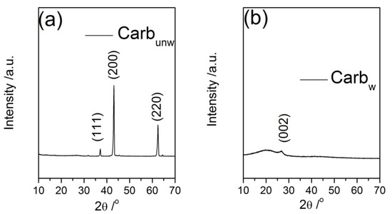 XRD diffractograms for: (a) Carbunw and (b) Carbw materials.