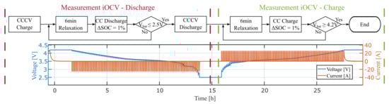 Figure 7 shows the sequence of the incremental OCV (iOCV) measurement in the flow chart, as well as the resulting voltage and current curves for the individual steps.