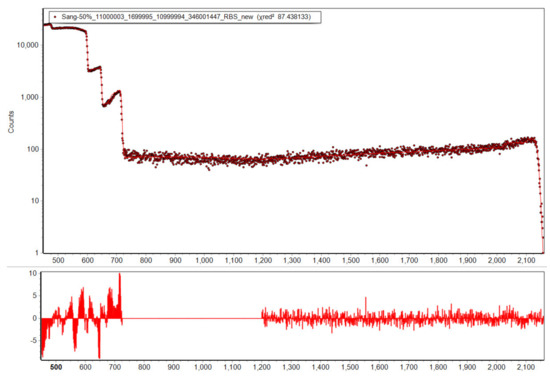 - Silva, T.; Rodrigues, C.; Mayer, M.; Moro, M.; Trindade, G.; Aguirre, F.; Added, N.; A Rizzutto, M.; Tabacniks, M. MultiSIMNRA: A computational tool for self-consistent ion beam analysis using SIMNRA. Nucl. Instrum. Methods Phys. Res. Sect. B Beam Interact. Mater. At. 2016, 371, 86–89. [Google Scholar] [CrossRef] [Green Version]