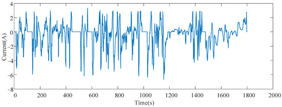 The whole aging experiment were carried out at 25 °C. Different discharge modes of LIBs will have different effects on the aging process of the batteries. In order to study the impact of different discharge modes on the accuracy of the SOH estimation method proposed in this paper, this study divides ten LIB cells into five groups, and sets different discharge conditions for each group, which is shown in Table 2. Each set of a group contains two LIB cells. The data of one of the cells of each group will be used as part of the training set, and the data of the other cell will be used as the verification set. All batteries used the charging mode recommended by the battery manufacturer, that is, CC charged with 1.675 A (0.5 C) current to the upper limit of the charging voltage, which is 4.2 V, and then switched to constant voltage (CV) charging. When the current in the CV charging process was gradually decreased from 0.5 to 0.01 C, the charging process stopped. For the discharge process, the first to fourth groups of LIBs were discharged from 4.2 to 2.5 V with 1.675 A (0.5 C), 3.35 A (1 C), 6.7 A (2 C), and 10 A currents, respectively. The fifth group of LIBs were discharged in Worldwide harmonized Light Vehicles Test Cycle (WLTC) operating conditions. The WLTC operating condition is a cyclic operating condition that changes periodically to simulate the discharge behavior of an EV in the actual process. The battery current under WLTC operating condition is shown in Figure 1. The WLTC operating condition simulates the starting, accelerating, smooth driving, decelerating, and sudden braking of electric vehicles, which corresponds to battery high current and low current discharge and battery low current and high current charging. Estimating SOH with battery data discharged in WLTC operating condition is more in line with the actual situation. The five groups of LIBs were subjected to aging experiments according to the charging and discharging conditions in Table 2. After every nine cycles of discharging and charging, the batteries were discharged from 4.2 to 2.5 V with a current of 0.2 C, and the discharge capacities were recorded. This capacity will be regarded as the true value of the battery capacity in the past ten charge and discharge cycles. Every time charging or discharging process is completed, the battery is allowed to stand for 1 h before discharging or charging. When the battery capacity drops to 80% of the rated capacity, it stopped the aging test on the battery. Table 2 shows the number of cycles in which the capacity of each group of batteries drops to 80% of the rated capacity under different charge and discharge conditions.