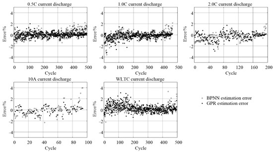 - When the LIBs are discharged with a larger current, the SOH estimation error is larger in some cycles.