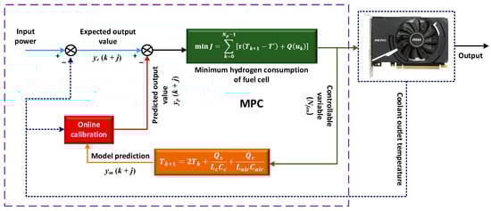 The battery temperature significantly impacts several aspects of battery performance, including longevity, energy conversion efficiency, and safety [119]. The rapid charge–discharge cycle of the battery was identified as the main cause of the rising operating temperature of the battery, which reduces the battery performance [120]. A low operating temperature affects the electrolyte performance, and a high operating temperature causes thermal runway and safety issues. Temperatures of more than 40 °C and less than −10 °C cause capacity losses and performance degradation of the battery. Hence, the thermal management of a battery pack in an EV is a crucial aspect [121]. To ensure the operation at optimal operating temperature, a BTMS should perform crucial tasks such as heat removal from the battery by cooling, increasing heat when the temperature is too low, and providing suitable ventilation for exhaust gases. According to the heat transfer medium, the BTMS can be classified into air, liquid, and phase-change material (PCM) types [122]. The internal temperature estimation of a battery is another important issue that can prevent the battery from aging and explosion risk. The internal temperature estimation can be performed using micro-temperature sensors, EIS measurement, and a lumped-parameter battery thermal model [95,122]. In contrast to battery-based EV applications, fuel cell vehicles (FCVs) have shown huge potential toward decarbonization. They are more efficient than conventional internal combustion engine vehicles and produce no tailpipe emissions since they only emit water vapor and warm air. However, thermal management in FCV should be considered an important research area to be explored [60]. Accordingly, Hu et al. [123] developed an operating temperature tracking control framework to decouple the operating temperature from the complicated driving conditions of the FCV, as shown in Figure 10.