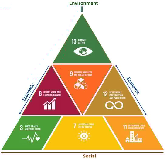 EV technology is not only a revolution in the transportation industry, but also a roadmap to economic development [16]. The increasing EV industry has tremendously influenced the economy by creating jobs that meet sustainable economic growth, which is related to SDG8 [17]. Unlike other transportation technologies, EV technology totally depends on battery storage; thus, there is no need to burn coal, oil, or gas, which means that it is a technology that provides clean and green energy, which is the requirement of SDG7 [18]. Furthermore, EV technology is an environmentally friendly solution that emits zero carbon which meets the major requirement of SDG13 [19]. Moreover, EV technology can also integrate renewable energy sources (RESs). As a result, industries which produce the materials for generating energy from renewable energy sources will develop. This will represent industrial innovation that can fulfill another goal (SDG9) [20]. Smart cities are currently becoming popular, and EVs are the most precious requirement for smart cities related to SDG11 [21].