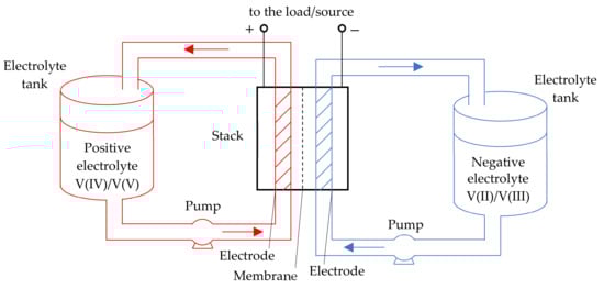 - Skyllas-Kazacos, M.; McCann, J.F. Vanadium redox flow batteries (VRBs) for medium- and large-scale energy storage. In Advances in Batteries for Medium- and Large-Scale Energy Storage. Types and Applications; Series in Energy; Woodhead Publishing: Cambridge, UK, 2015; pp. 329–386. [Google Scholar] [CrossRef]