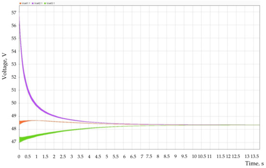 A Matlab Simulink model was developed to test the performance of the proposed circuit. Figure 11 shows a plot of the voltage change when three VRB stacks are connected in parallel using the proposed circuit.
