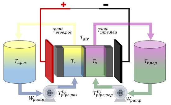 - Yan, Y.; Li, Y.; Skyllas-Kazacos, M.; Bao, J. Modelling and simulation of thermal behaviour of vanadium redox flow battery. J. Power Sources 2016, 322, 116–128. [Google Scholar] [CrossRef]