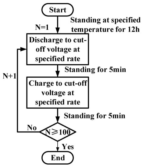 Flowchart of the charge–discharge cycle test with different aging paths.