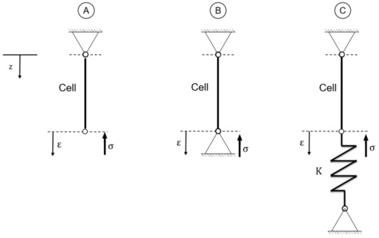 will be used in the following. The negative sign from Equation (9) results from the clamping situation of the cell, since the resulting compressive force acts against the growth . In summary, the relationship is as follows: