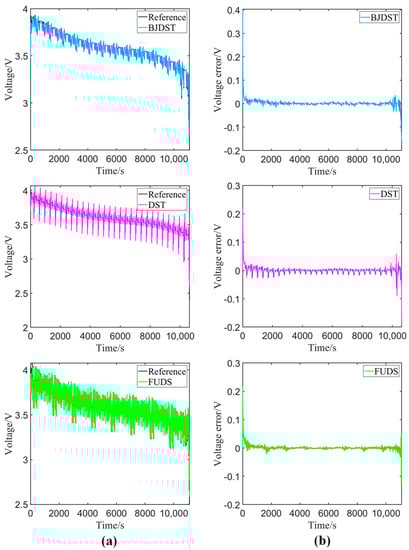 Measured and estimated terminal voltage profiles: (a) voltage and (b) errors.