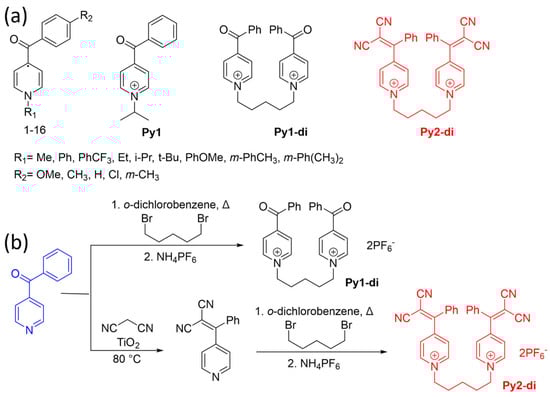 Chemical structures (a) and synthesis (b) of pyridinium derivatives [70,89,90].