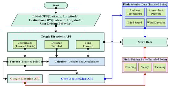 - Collection of essential data and information from three application programming interfaces (APIs), namely Google Directions API, Google Elevation API, and OpenWeatherMap API, to closely emulate real-world battery electric vehicles.