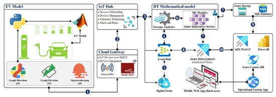 - Proposing a DT framework for SOC estimation of LIBs integrated into a cloud-based data-driven system considering different aspects affecting BEV’s SOC estimation, including driving behavior, GPS location of the EV, and weather factors.