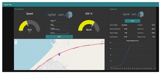- Decision visualization layer: This facilitates human interaction with the DT system. It provides a graphical user interface (GUI) that displays the components of the EV and control features related to optimizing the LIB performance. The GUI allows users to visualize and interact with the DT models, enabling them to make informed decisions and take appropriate actions based on the insights provided by the DT.