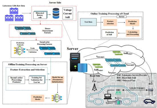 Schematic diagram of an intelligent cloud battery management system (the SOH part) based on an intelligent connected vehicle management platform.