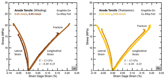 Anode tensile behavior. (a) Winding direction. (b) Transverse direction.