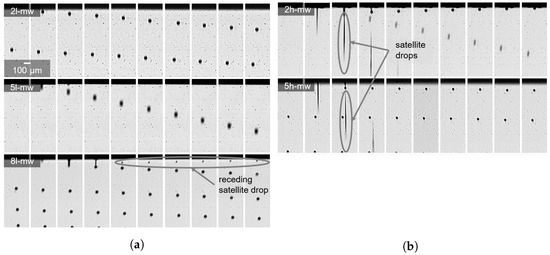 According to Wijshoff [11], a stable drop formation refers to the printing condition in which a single drop is generated in the absence of extra drops. In contrast, the appearance of these satellite drops is indicative of an inadequate printing regime [54].