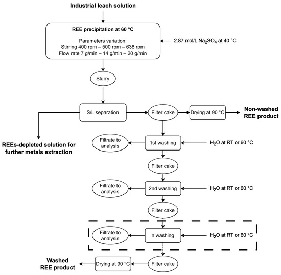 The entire flow-chart of the precipitation-washing experiments is shown in Figure 1.