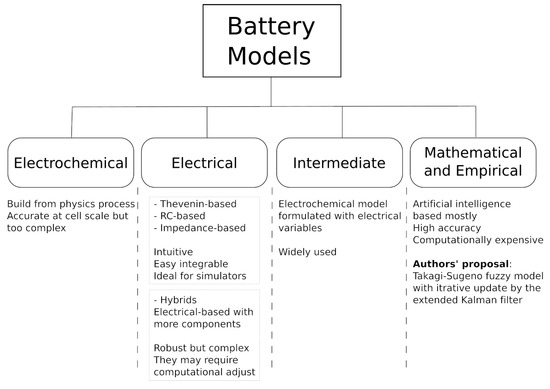 Thus, many models have been suggested in the specialized scientific literature, with their corresponding modifications and subsequent improvements, which try to describe the behavior of the different battery technologies [7]. However, given that what underlies the operation of these energy accumulators are chemical reactions, more or less complex, that depend on various factors and variables, and that show highly nonlinear behavior, obtaining accurate models is not an easy task. Therefore, it is currently a scientific field in full activity.
